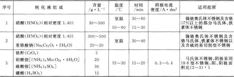 深圳電鍍廠:不銹鋼鈍化處理通常在硝酸或硝酸一鉻酸鹽溶液中進行,表7—22列出鈍化處理液的成分及工藝條件。
