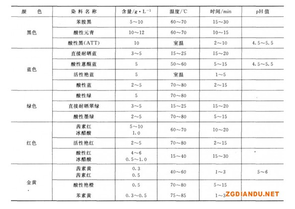 表7-5鋁及鋁合金有機染料著色工藝