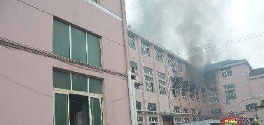 當日上午9時22分,武義大隊接到報警后立即調派了4輛消防車20余名官兵前往現場進行處置,同時,調集桐琴專職消防隊前往現場進行增援。15分鐘后,消防官兵到達現場,發現起火現場為一棟三層鋼混結構建筑,此時三樓車間的窗戶口正冒出很大的濃煙,不時有火光從里面照出,先期趕到的桐琴專職消防隊已出水槍對火勢進行撲打。經進一步偵察得知,起火部位為車間內噴漆房的煙囪,隨后蔓延到車間其他部位,煙囪內壁大量的油漆致使車間內部火勢燃燒迅猛,如不及時撲救,勢必造成嚴重后果。